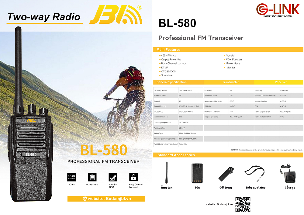 Tính năng nổi bật của máy bộ đàm JBL BL-580