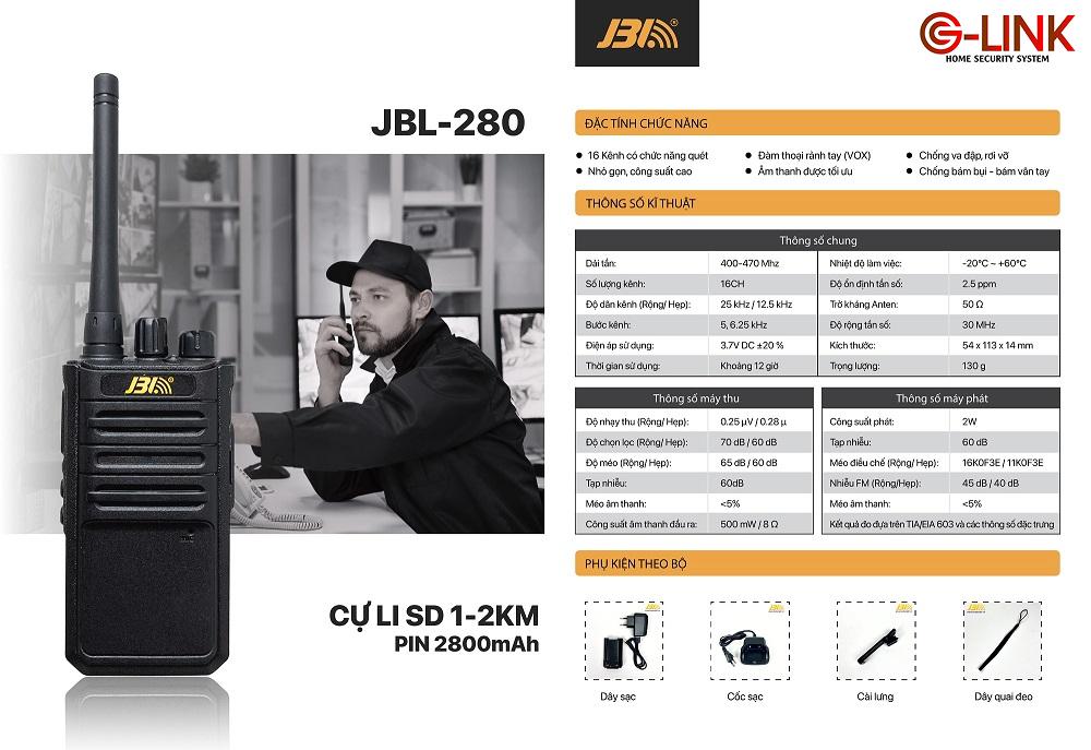 Thông số kỹ thuật bộ đàm JBL BL-280